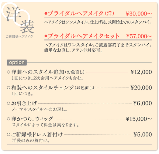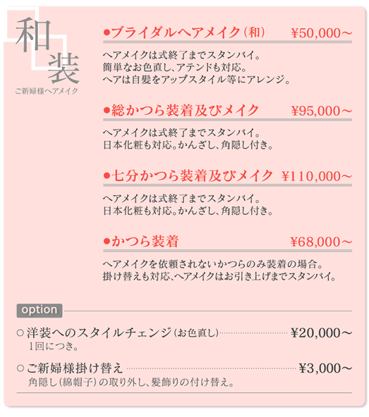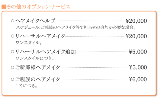上記の各コース、各オプションは消費税込の料金です。