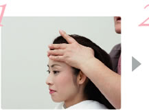 かつらをのせていきます。 |