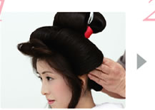 七分かつらを付けます。 |
