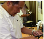 山田かつら伝統の手法を受け継ぐ、かつら製造の責任者。テレビ局関係の経験も長く、時代物のかつらはもちろんのこと、バラエティ番組の仕掛けかつらまで幅広く対応する。重さを感じさせないフィット感のあるかつら作りが特長。 |