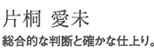 日本髪の結い上げ担当。高島田に代表される花嫁かつら関係の仕上げには定評がある。花嫁らしい、柔らかで優美な髪の流れが特長。