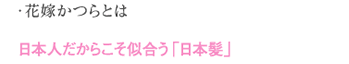 | 和装花嫁のかつらスタイルは「文金高島田(ぶんきんたかしまだ)」です。江戸時代に武家の女性が正式な儀式の場で結った髪型でした。他にも未婚女性や中流階級の女性が結った「中高島田」や、京都の芸妓が改まった場で結う「芸妓島田」などがあります。 |