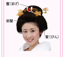 | 前髪は花嫁のイメージを決定付ける大切なポイントです。日本髪では、ふっくらと丸みをもたせてまとめ上げます。 |